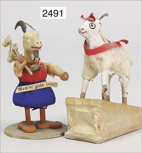 2 Teile, Quitschfigur, Schaf, Höhe 10 cm, Stimme defekt, dazu Scherzfigur, Meckere nicht so viel, Watte-Massekopf