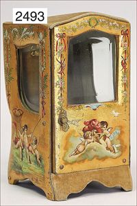 Sänfte, 17,5 cm, Frankreich, Blech geprägt, lithogr., geschliffene Gläser