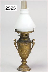 Petroleumlampe, 18 cm hoch, filigran gearbeitet