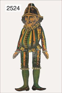 Hampelmann, Holz, mit lithogr. Papier beklebt, 105 cm, bewegl. Arme u. Beine sowie Knie