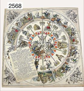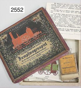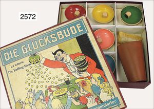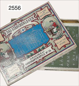 Würfellegespiel, um 1900, Orig.-Holzkiste mit bunt lithogr. Deckbild, 40 x 32 cm
