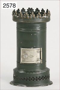 Blech-Kakaodose, Wien, mit Knauf, rot lackiert, 10 cm hoch, guter Zust.