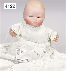 KÄMMER & REINHARDT Kindergesichtpuppe, 80 cm, blaue Schlafaugen, off. Mund, oben Zähne, Kinngrübchen, Gliederkörper