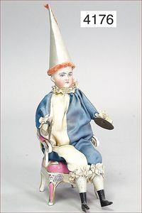 SCHÖNAU & HOFMEISTER Candy Container, Junge, als Holländer, Biskuitporzellankopf, mit fest eingesetzte Glasaugen, off. Mund, Masse-rme Holz-Beine, 23 cm