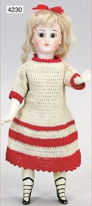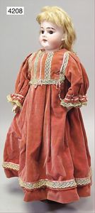 SIMON & HALBIG 1249 Dep 7., braune Schlafaugen, off. Mund, oben Zähne, Kinngrübchen, durchst. Ohren, deutscher Gliederkörper, Hände übermalt, alte Kleidung, Unterkleidung, Schuhe u. Strümpfe, schöner Ausdruck