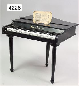 Flügel, Holz, Tasten wohl Celluloid, 44 cm breit, mit einschraubbaren Füßen, einige Notenblätter