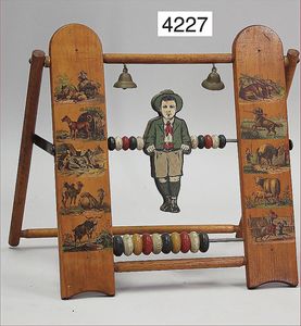 Rechenspiel, mit Figur, Holz, ca. 1920, Höhe 35 cm, schöne Puppendekoration