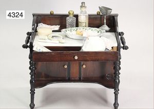 Frisiertisch mit Schublade, Mamorplatte, 28 cm breit, 24 cm hoch, mit Zubehör