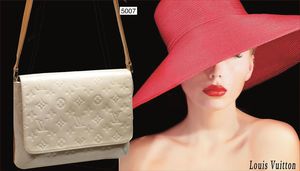 LOUIS VUITTON Tompson Street, Monogramm Vernis, beigefarbenes Lackleder, Klappe, mit Magnetverschluss, Innenfutter beigefarbenes Glattleder, Louis Vuitton Paris eingraviert, gr. Fülltasche, seitl. 1 Seitentasche, 1 naturfarbener Trageriemen, größenverstellbar, vergoldete Messingbeschläge, leichte Abnutzungsspuren erkennbar, leichter farbl. Unterschied auf der Rückenseite, sonst schöner Zust., 25 cm breit, 20 cm hoch
