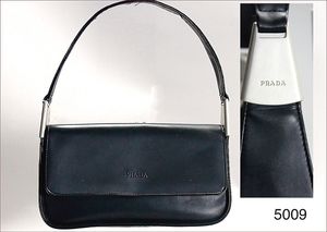PRADA klassische schwarze Damentasche, mit Magnetknopf unter der Klappe, innen schwarzer Stoff, gr. Fülltasche, seitl. Seitentasche mit Reißverschluss, versilberte Beschläge, langer lederner Trageriemen, guter Zust., minim. Abnutzungsspuren