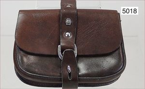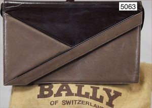 BALLY of Switzerland Damentasche, klassische Clutchform, weiches braunes Leder, leicht glänzend, Magnetknopf, innen beigefarbenes Kalbsleder, gemarkt Bally les Accessoires, 2 Seitentaschen, 1 Tasche mit Reißverschluss (Metall), 1 Lippenstifthalter, langer lederner Schulterriemen, älteren Datums, Abnutzungsspuren, im Orig.-Stoffbeutel