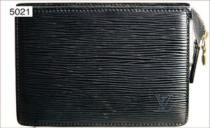 LOUIS VUITTON Dauphine poche, kl. Kulturtasche, Epi-Leder, schwarz, mit LV Prägung, Gebrauchsspuren am Innenfutter