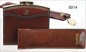 GOLDPFEIL Konv., 1 Portemonnaie, neuwertiger Zust., braunes glattes Leder, vergoldete Messingbeschläge, 3 Kreditkartenschlitze, 2 Füllfächer f. Scheine, 10 cm hoch, 10 cm breit, 1 Kamm-Etui, ungebraucht, dazu 1 Etui mit Reißverschluss, gemarkt Goldpfeil Germany 1856, wohl f. Kamm, neuwertig