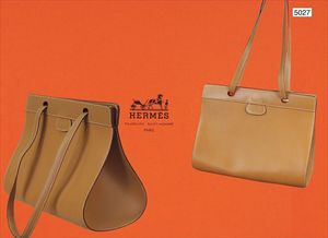 HERMÈS Typ Gardenparty, Shopper, karamellbraun, Innenmarkierung Hermès Paris Made in France, 32 cm breit, 25 cm hoch, 16 cm tief, 1 durchgehender lederner Trageriemen, minim. kl. Flickstelle, sonst schöner Orig.-Zust., minim. Abnutzungsstellen am Innenfutter, 4 goldfarbene Metallfüße, im Orig.- Staubbeutel, Orig.-Kart., Hermès Paris Faubourg Saint-Honoré