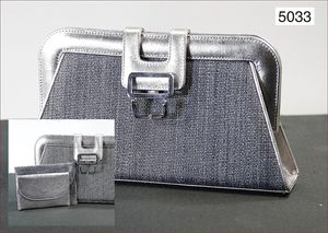 COMTESSE Damen-Abendhandtasche, Made in Germany, metallfarben, silberfarbene Messingbeschläge, Innenfutter graues weiches Kalbsleder, gr. Fülltasche, seitl. 1 Seitentasche, 1 Seitentasche mit Reißverschluss, auf 4 Füßen, passender Spiegel, dazugehöriges Portemonnaie, 26 cm breit, 15 cm hoch, neuwertiger Zust., ausgefallen