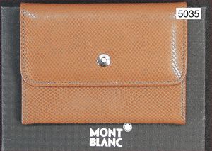MONT BLANC kl. Portemonnaie, caramel braun, mit Druckknopf, 1 seitl. Schlitz, Fülltasche f. Münzgeld, im Orig.-Kart., neuwertiger Zust., 10 cm breit, 7 cm hoch