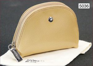 MONT BLANC kl. Reise-Portemonnaie, mit Reißverschluss, silberfarbener Zipper, mit Kettenanhänger f. Gürtel, beige, 10 cm breit, 8 cm hoch
