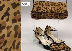 UNÜTZER Felltasche, handmade in Italy, aufgedrucktes Leoprint, 31 cm breit, 15 cm hoch, 1 lederner Schulterriemen, innen dunkel braunes Wildleder, gr. Fülltasche, dazu passende Pumps, mit Lederriemchen, Fell mit abgenähtem schwarzem Leder, Gr. 40, leichte Gebrauchsspuren an der Sohle