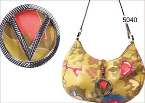 VALENTINO Damen-Stofftasche, made in Italy, olivgrünes florales Muster, 28 cm breit, 17 cm hoch, Leder-Trageriemen, Innenfutter türkisfarbene Seide, gr. Fülltasche, seitl. 1 Seitentasche mit Reißverschluss, silberne Valentino-Schnalle auf der Vorderseite, guter Zust.