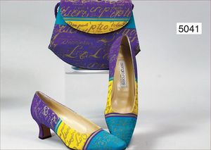SERGIO ROSSI Bunte Damen-Stofftasche, made in Italy, 23 cm breit, 18 cm hoch, 1 langer lederner Schulterriemen, dazu passend Segio Rossi Pumps, ungetragen Gr. 40, 5 cm Absatz