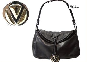 VALENTINO Damen-Ledertasche, Made in Italy, 4 Füße unten, schwarzes glattes Leder, vorne sowie hinten Geheimfach mit Magnetknopf außen, 2 kurze Trageriemen, innen gr. Fülltasche, seitl. 1 Seitentasche mit Reißverschluss, 1 Handytasche, Taschenverschluss Reißverschluss