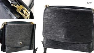 LOUIS VUITTON schwarzes Epi-Leder, eingeprägte Louis Vuitton Signatur auf der Vorderseite, Klappe mit darunter liegendem Druckknopf, Innenfutter weiches schwarzes glattes Leder, 2 gr. Fülltaschen, mittig 1 gr. Sicherheitsfach, Hinterseite mit vergoldetem Zeichen mittig, mitte Druckknopf, 1 langer Schulterriemen, größenverstellbar, vergoldete Messingbeschläge, kl. Gebrauchsspuren zu sehen, am Leder keine Gebrauchsspuren , sonst schöner Zust., 23,5 cm breit, 19 cm hoch, klassisch