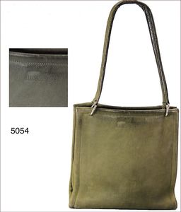JIL SANDER Damen-Shopper, olivgrün, robustes festes Leder, 34 cm hoch, 32 cm breit, silberne Messingbeschläge, 2 lange Schulterriemen, Vorderseite eingeprägt Jil Sander, Innenfutter schwarzer Stoff mit JS Motiv, 2 gr. Fülltaschen, seitl. 1 Seitentasche mit Reißverschluss, leichte Abnutzungsspuren am Henkel der Tasche.