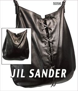 JIL SANDER schwarzer Shopper, glattes Leder, Vorderseite mit Lederbändchen geschnürt, Innenfutter schwarze Seite, gr. Fülltasche, seitl. Seitentasche mit Reißverschluss, langer Schultertrageriemen mit Schnallen, größenverstellbar, 34 cm hoch, 35 cm breit, minim. Gebrauchsspuren am Leder (Unterseite der Tasche), sonst schöner Zust.