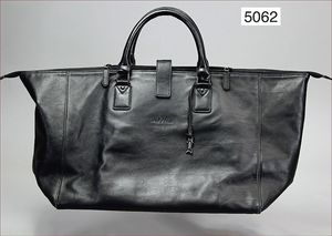 GOLDPFEIL Reisetasche, schwarzes weiches Leder, Goldpfeil eingeprägt auf Frontseite, 2 lederne kurze Trageriemen mit Goldpfeil Anhänger, Druckknopf auf der Frontseite, Reißverschluss mit Lederzipper, innen Stoff, gr. Fülltasche, seitl. Seitentasche mit Reißverschluss, gemarkt Goldpfeil Germany 1856, unten 4 Füße, 54 cm breit, 28 cm hoch, bis auf kl. Gebrauchsspuren in gutem Zust.