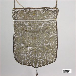 wohl Christliche Geldbörse (Sack), herrschaftl., mit goldenen Metallfäden verziert, 16 cm breit, 23 cm hoch