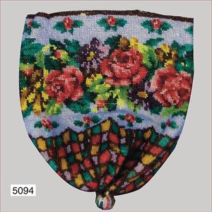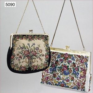 PETIT POINT frühe Petit Point Damentasche, mit Blumendekor, teilw. Perlenarbeit, teilw. wurden Perlen ergänzt, an vereinzelten Stellen fehlen Perlen, feiner filigran verarbeiteter Messing-Taschenbügel, gemarkt Made in France CCMOR, kurzer Kettentrageriemen, 36 cm breit, 25 cm hoch, altersbed. Abnutzungsstellen