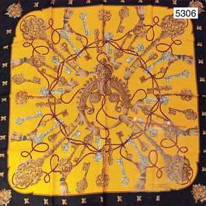 HERMÈS Seidenhalstuch, Paris, Aufschrift "Claus Hermès Collection", 87 x 85 cm, schöner neuwertiger Orig.-Zust., 100% Silk, schöne kräftige goldene sowie blaue Farben