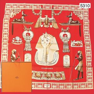 HERMÈS Seidenhalstuch, 1976 Paris, Aufschrift "Tutankhamun", designed by Vladimir Rybaltchenko, ägyptisches Bild, schöne kräftige Farben, 90 x 90 cm, 100% Seide, im Orig.-Kart., neuwertiger Orig.-Zust.