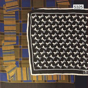 HERMÈS Cashmere-Schal, 1969 Paris, Aufschrift "Cheval turc", designed by Christiane Vauzelles, 65% Cashmere, 35% Silk, 90 x 88 cm, schöne kräftige Farben, ausgefallen, schöner Orig.-Zust.
