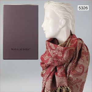 MALA ALISHA Halsseidenschal, kaminrot, goldfarben, ca. 2 m lang, im Orig.-Kart., neuwertig, indische Musterung