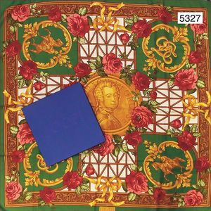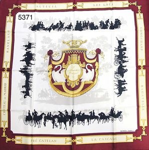 HERMÈS Seidenhalstuch, 1953 Paris, 100% Silk, Aufschrift "VUE DU CARROSSE DE LA GALÉRE LA RÉALE", designed by Hugo Grygkar, 85 x 90 cm, schöner Orig.-Zust., neuwertig, mit herrschaftl. Volksszene