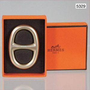 HERMÈS Metallschnalle für Halsseidentücher o. Gürtel, im Orig.-Kart., goldfarben, 5,5 cm breit, 3,5 cm hoch, neuwertig