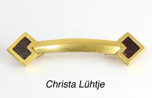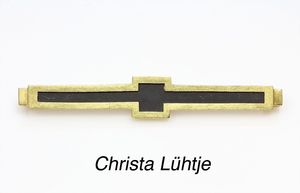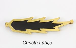 Brosche, CHRISTA LÜHTJE, München 1989, GG 900/000, Onyx-Platte blattförmig geschnitten, ca. 63 x 18 mm