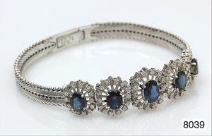 Armband, WG 585/000, 5 Saphire oval facettiert, ca. 5,0 ct, 70 Diamanten ca. 0,7 ct, weiß, L = 18,2 cm, total 20,7 g