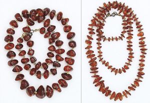 Kette, alte Bernstein-Oliven, Drehschließe, D vorne 15,5mm, ca. Länge 60,5 cm, total ca. 24,4 g