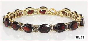 Armband mit Sicherungskettchen, GG 585/000, 15 Granate facettiert (ca 9 x 7mm), L. ca. 18,0 cm, total 17,2 g