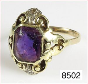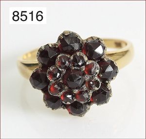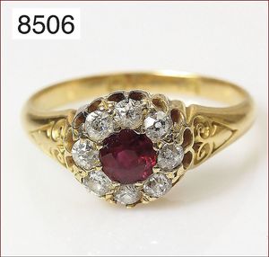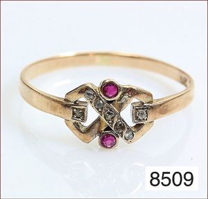 Ring England um 1860/70, GG 750/000, 1 Rubin, feine Farbe, ca.0,45 ct., 8 Altschliff-Diamanten ca. 0,35 ct, weiß, RW ca. 54