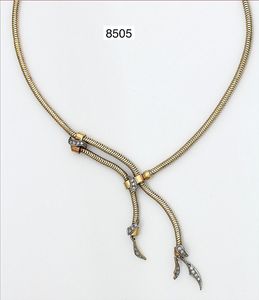 Collier, wohl Amerika 30/40er Jahre, GG/WG 750/000, Schlangen-Kette, Enden mit Diamanten ausgefaßt, ca. 0,25 ct weiß (1 Stein fehlt), Rund-Kastenschloß mit Sicherheitsacht, L = 42 cm, total 50,3 g