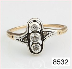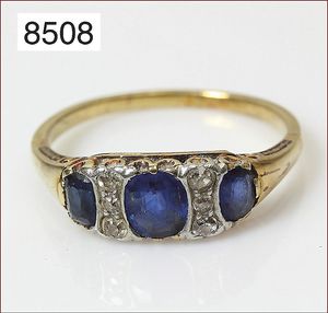 Ring , Anfang 20. Jhd., Deutsch ?, GG/WG 585/000, 3 Saphire ca.1,0 ct., 4 Diamanten weiß, RW ca. 56