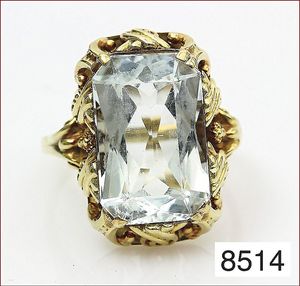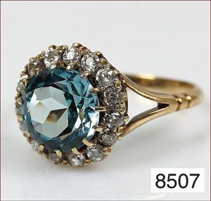 Ring Anfang 20.Jhd. England, GG 585/000, sehr feiner Aquamarin, ca. 2,1 ct, 15 Altschliff-Diamanten ca. 0,5 ct w-si, RW ca. 52