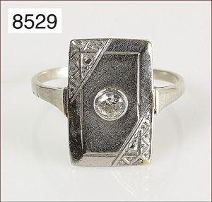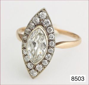 Ring, feines ART-DECO um 1910/20, RG 585/000, Pt, Diamant-Navette ca. 1,35 ct w-vsi/si, 16 Altschliff-Diamanten ca. 0,64 ct tw/w-si/p, 2 Diamanten tw/w-p (alt ersetzt), RW ca. 58,5