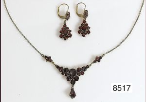 Lot: Ohrhänger, GG 333/000, Granate, H = 34,5 mm, Collier, Metall vergoldet, Granate, L = 42,0 cm
