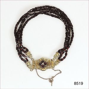 Granatcollier 4-reihig, 2.Hälfte 19. Jhd. (alter böhmischer Granat), Schließe Double, innere Kette ca. 35,5 cm, äußere Kette ca. 41,5 cm