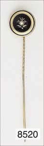 Nadel, ART-DECO 20er Jahre, GG 585/000, 22 Diamantrosen im Verlauf gefaßt (Silber), 1 Akojaperle, L = 68 mm