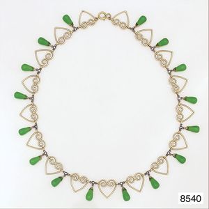 Collier-Kette, frühes 20.Jhd., Frankreich ?, GG 750/000, 16 grüne Achat-Pampeln, 17 Diamanten, ca. 0,35 ct, weiß (1 Stein fehlt), in Ag gefasst, L = 46 cm